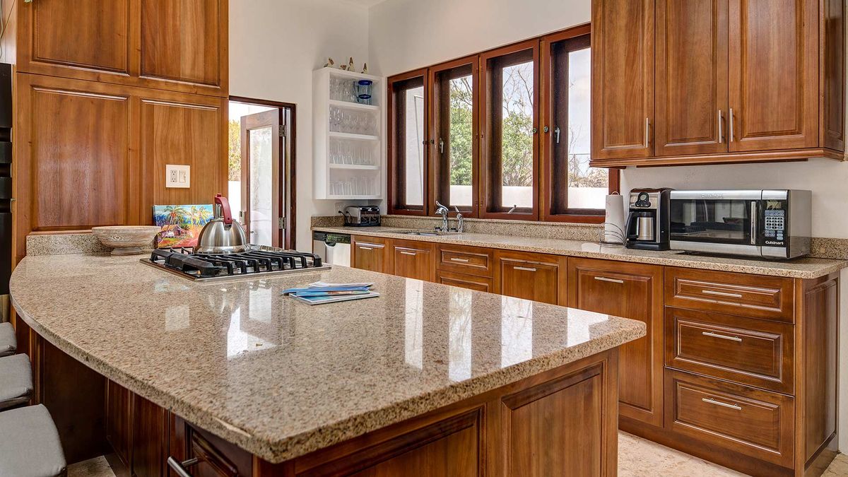 The architectural design of Waves Villa is characterized by clean, modern lines, warm accents, and expansive windows that frame the sensational sea views, creating a harmonious blend of elegance and tranquility. Top-notch amenities enhance this sanctuary’s experience, including a fully equipped gourmet kitchen, a practical gas grill, a cooling outdoor shower, and a relaxing hammock perfect for unwinding breaks.