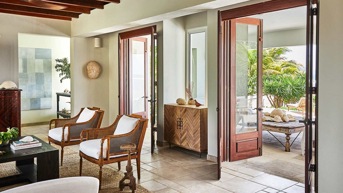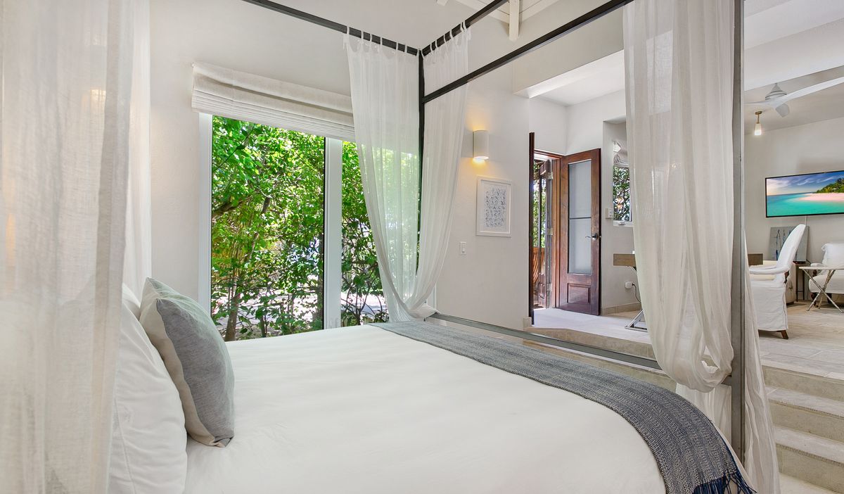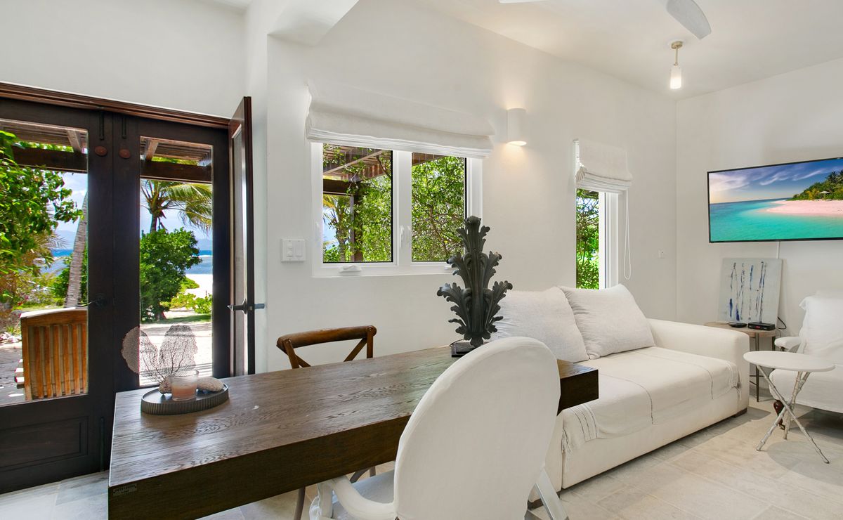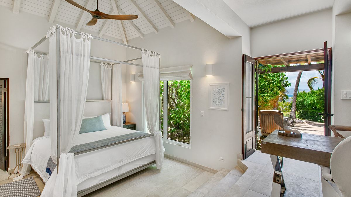 Guests can enjoy 166 feet of beach frontage, a private pool, and a large green space with seating. Step right to a private beach area from the guest house. Large floor-to-ceiling windows and doors merge indoor and outdoor island living. Enjoy tropical views in all directions from the indoor dining area, or dine alfresco by the pool, cooled by gentle Caribbean breezes.