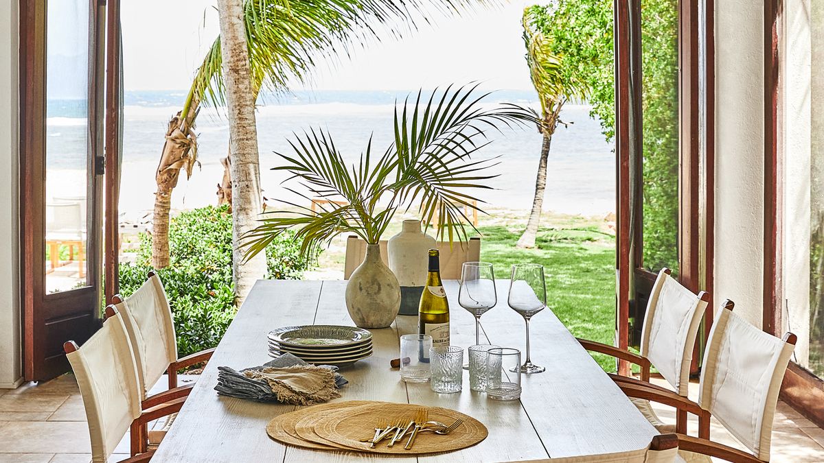The lovely five-bedroom villa in aguilla compound is nestled in lush tropical palms directly on the shimmering Caribbean, on Blowing Point.