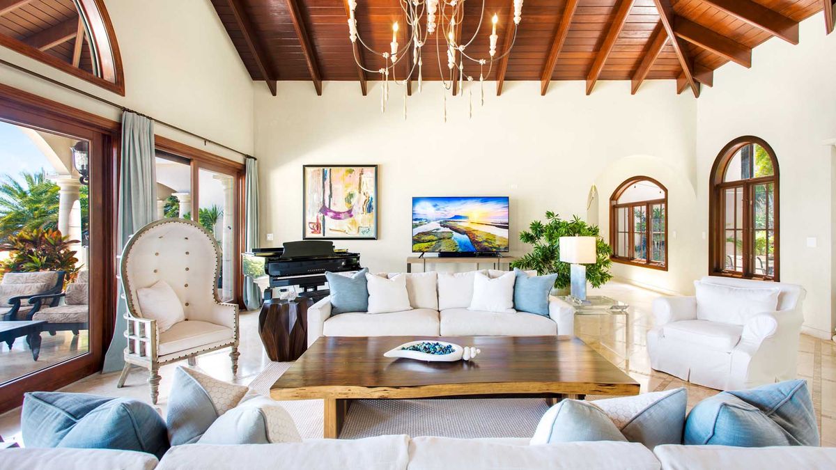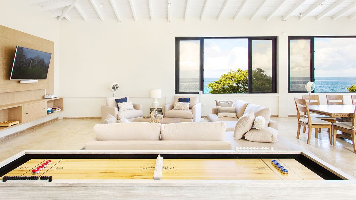 Refresh and rejuvenate in the sparkling waters of the estate's two pools, or unwind in the soothing warmth of the two Jacuzzis. Younger guests can enjoy the kids' playground area or indoor lounge, while tranquil spaces such as the Zen Den and Shaded Lanai offer peaceful retreats for reflection and relaxation. Alfresco meals by the pool or on the beach provide the perfect opportunity to savor the warmth of the Caribbean sun.