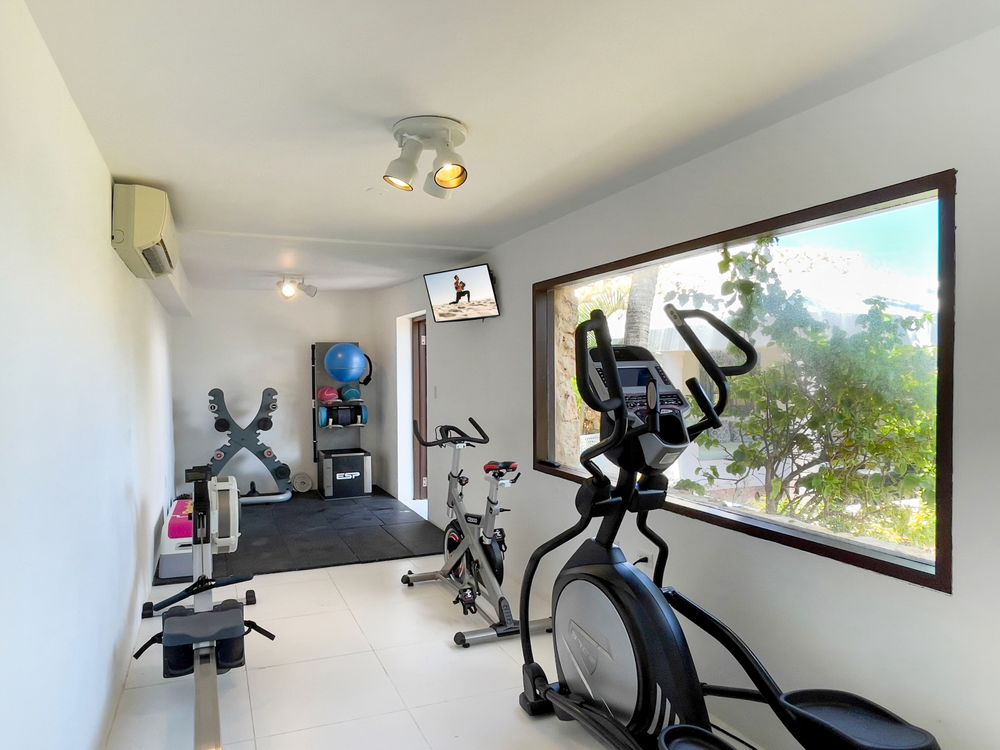 Indigo’s amenities are nothing short of extraordinary. The estate features two pristine swimming pools, one on a dedicated beach deck offering panoramic ocean views. This beach deck provides direct access to a private stretch of sand, where you can enjoy swimming, snorkeling, and other water activities. The property includes a private tennis court, pickleball court, and a fully equipped fitness suite for those who prefer a more active lifestyle.