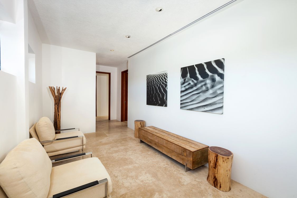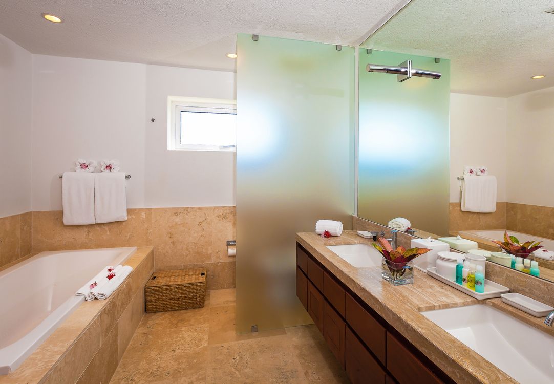 On the second floor, the villa features two master suites and two additional guest bedrooms, all meticulously designed to provide a luxurious and comfortable stay. The master suites are particularly impressive, with one offering a private balcony, a perfect place to enjoy the warmth of the sun and the tranquility of the surroundings. Both suites feature spacious walk-in closets and elegant bathrooms, ensuring a private retreat within the villa. The fifth bedroom on the first floor offers the same level of comfort and style, although it is the only room without ocean views.
