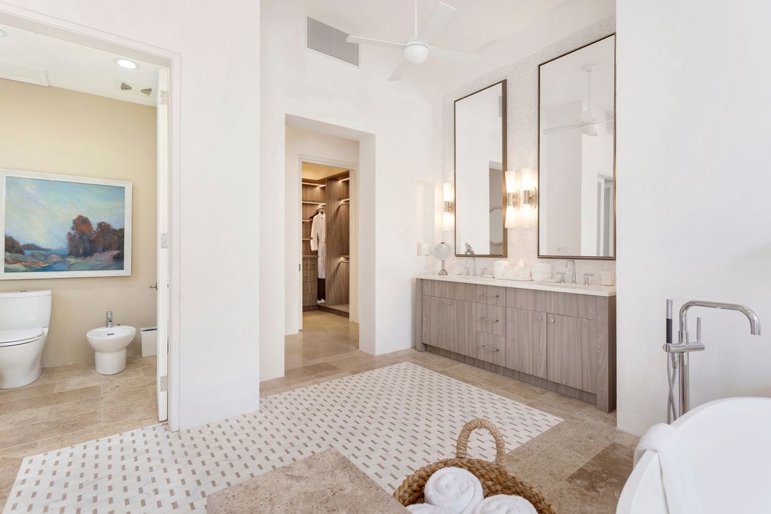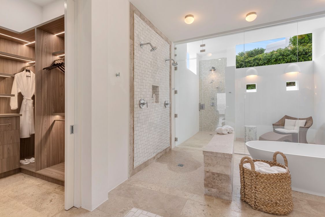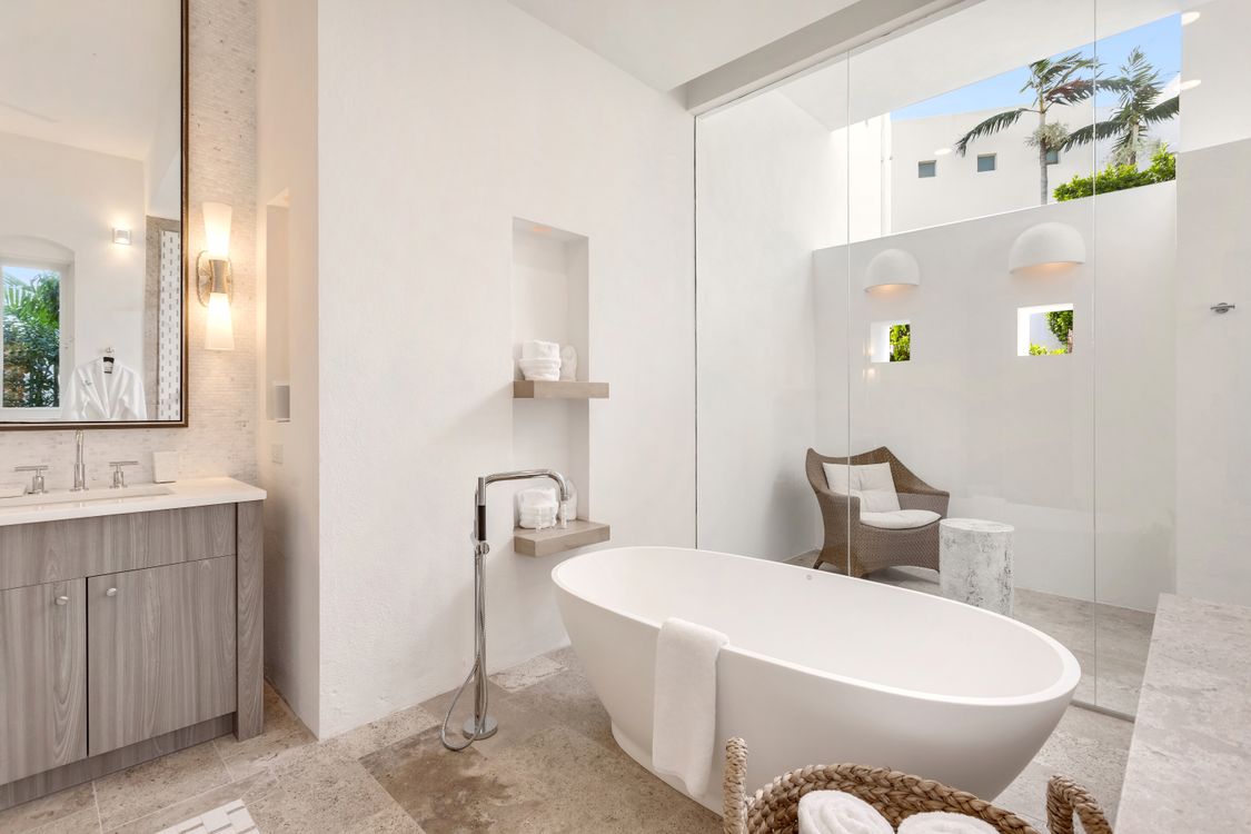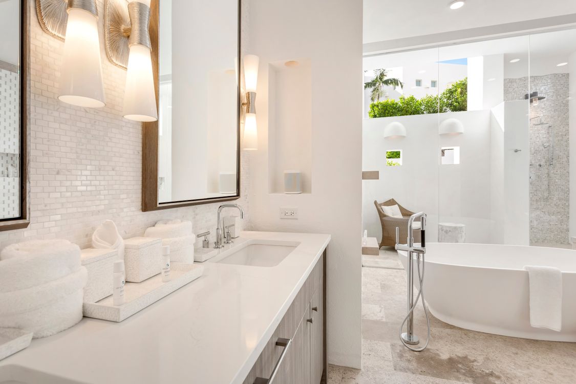 The villa's accommodations are designed with both luxury and comfort in mind. On the first floor, you'll find four primary suites, each a private retreat complete with a cozy sitting area, an en-suite bathroom finished in beautiful white marble, a bidet, and an outdoor shower.