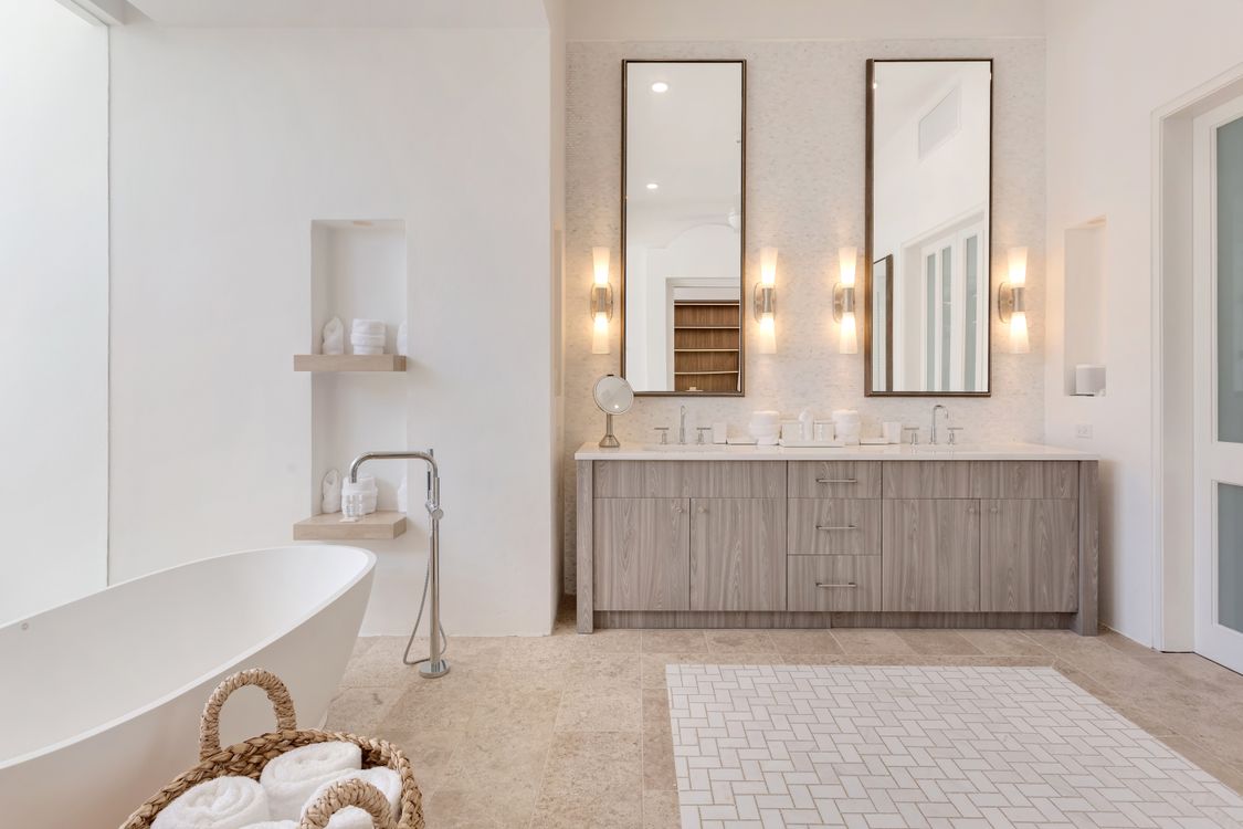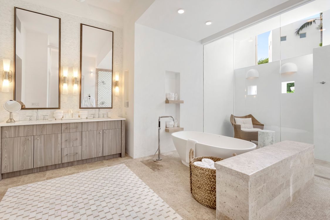 As you approach the villa, you’re greeted by a private walkway lined with fountains leading to a stone-covered courtyard and the grand entrance. The understated yet elegant design sets the tone for what awaits inside, an oasis of light, comfort, and sophistication.