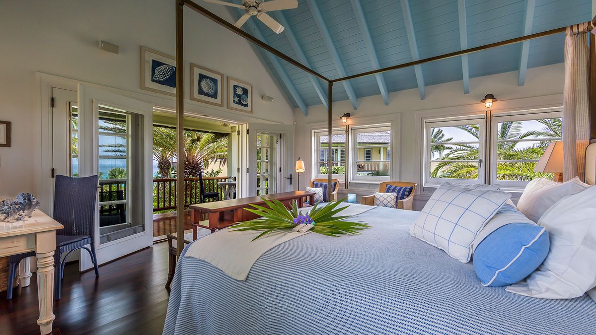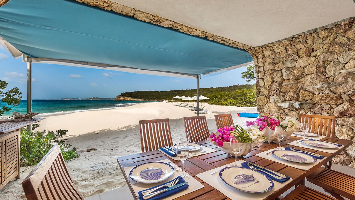 The main house, one of the stunning villas in Anguilla, has four master bedroom suites and communal living areas that open to the expansive terrace and sea view deck. The upstairs master bedroom suite has a balcony with a separate, private Jacuzzi. The separate dining pavilion can be open-air or closed off and air-conditioned. Various alfresco dining opportunities include a romantic shady grotto right on the beach.