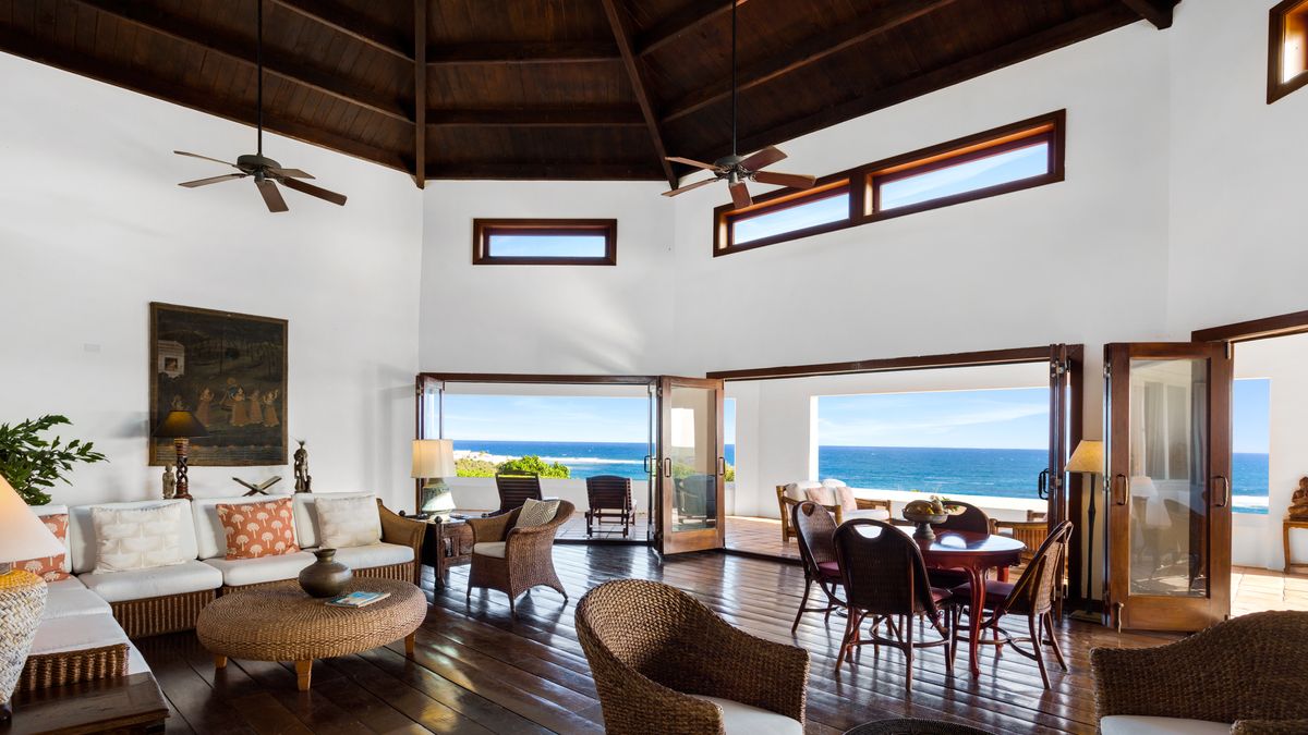 The large and impressive great house was the most recent addition to the estate and is home to the recently refurbished gourmet kitchen, large living and dining space with wrap around veranda and plenty of comfortable places to relax. There is also an office and full bath in this building. The seven bedrooms are housed within three additional buildings and all have excellent views of the sea and islands beyond. There is a gym, har-true tennis court and independant staff wing on the property. This property has the ability to be sub-divided and a section sold if desired.