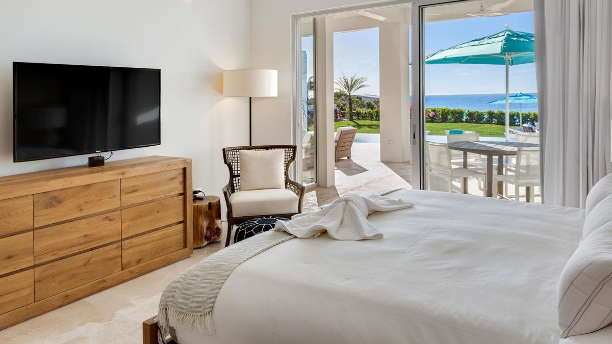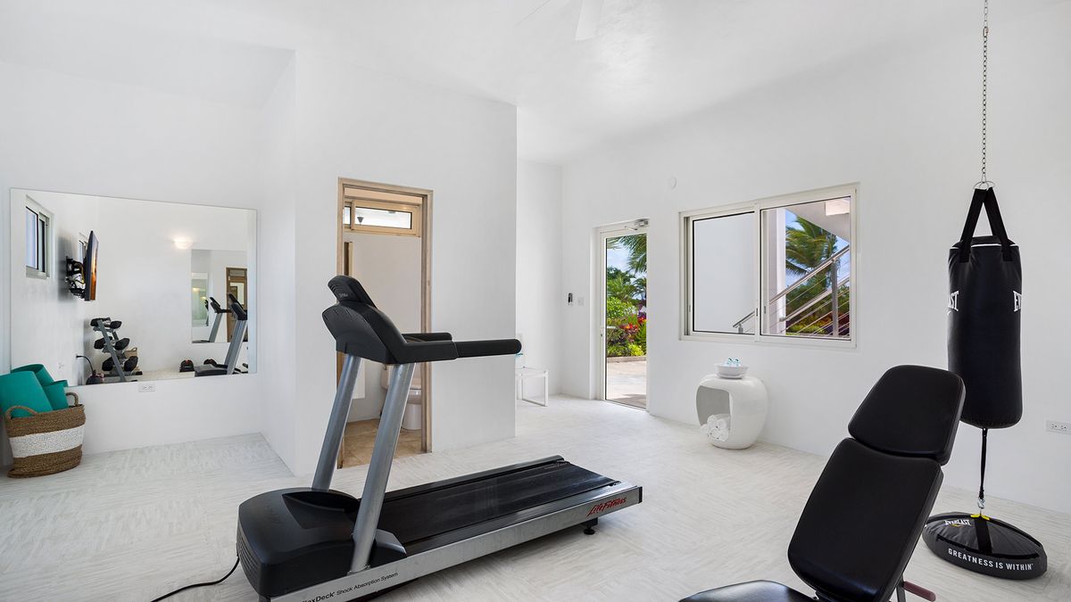 Space and privacy are key features of this villa, which can comfortably accommodate up to 12 guests, making it perfect for groups of friends or family reunions, with each bedroom offering its own en-suite bathroom for enhanced privacy. Guests can enjoy a state-of-the-art private fitness center, a pickleball court, a private cove, exceptional privacy, and a full staff ready to assist when needed