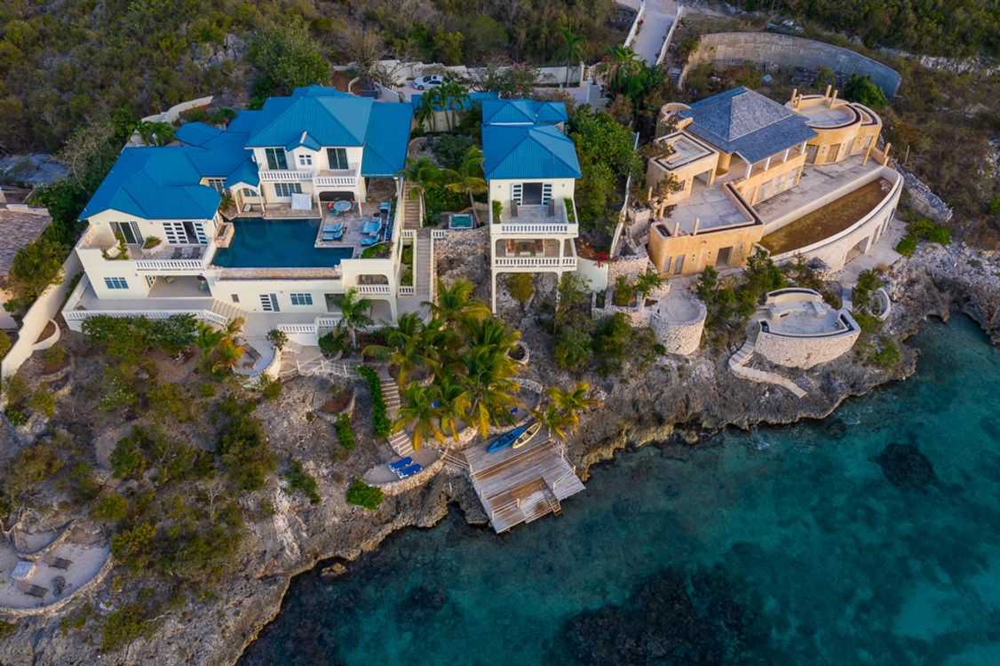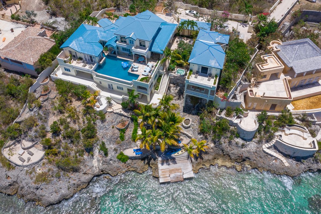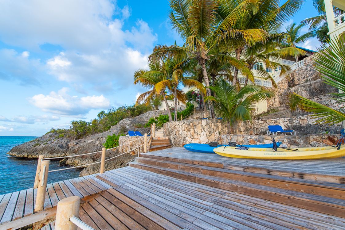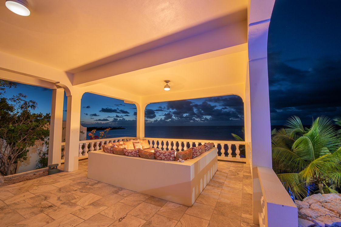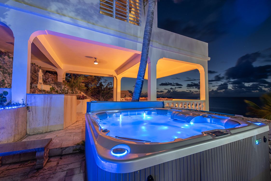 Hilltop Jacuzzi / Shaded bar and party pavilion / Custom made furnishings / private pier